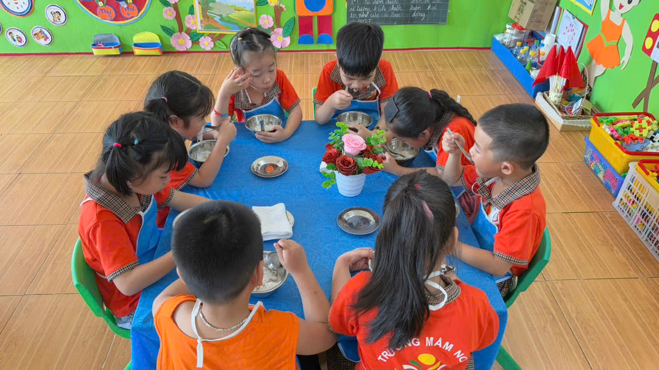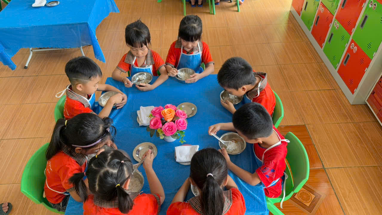 Nhà trường luôn nỗ lực duy trì và nâng cao chất lượng bữa ăn bán trú, đảm bảo an toàn vệ sinh thực phẩm, mang đến cho trẻ những bữa ăn ngon miệng, đủ chất và tràn đầy yêu thương.