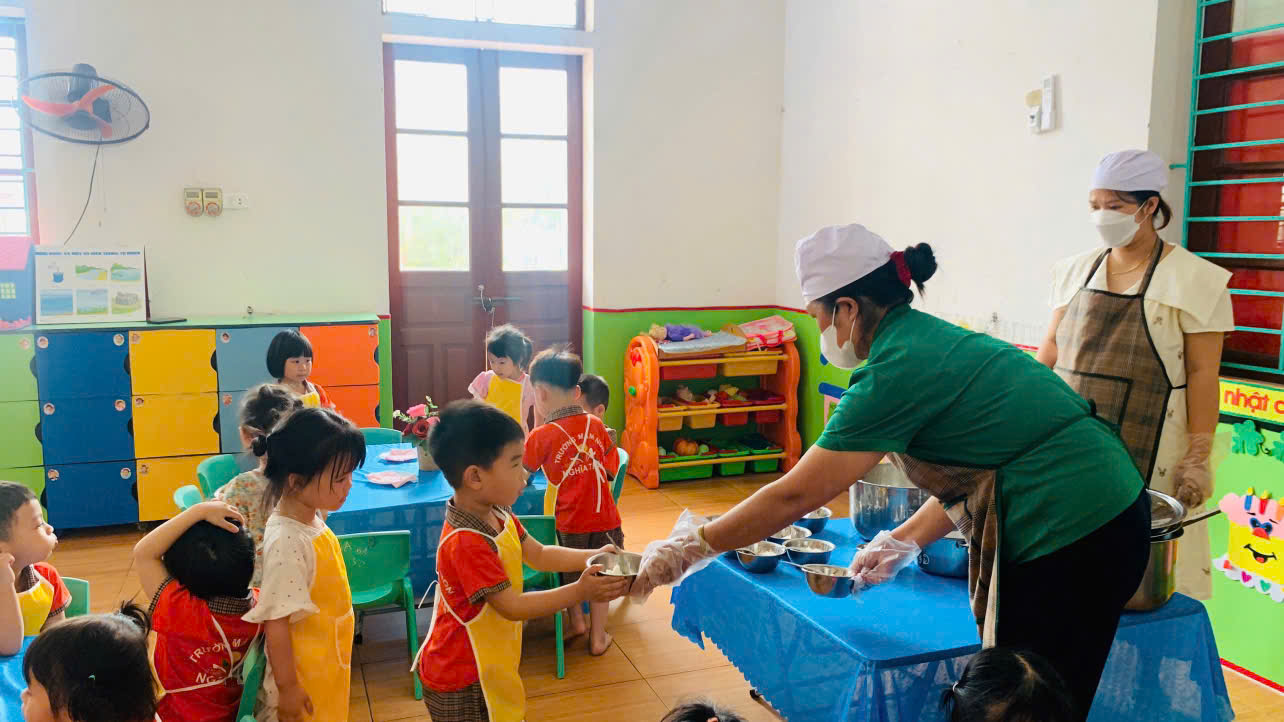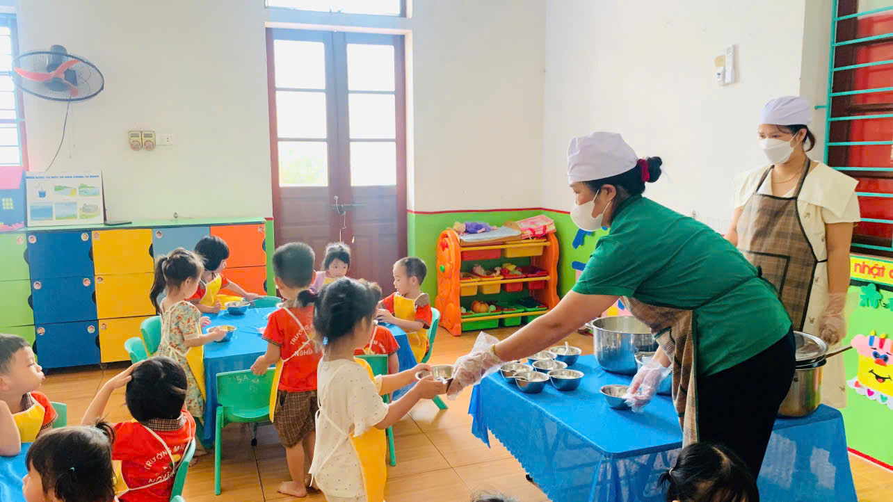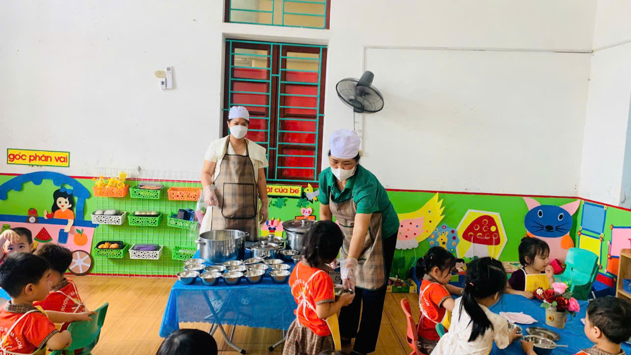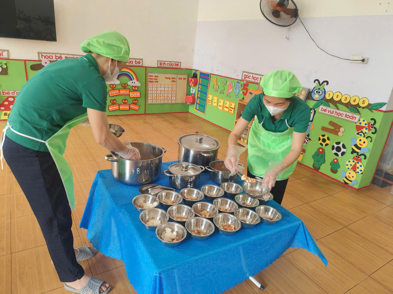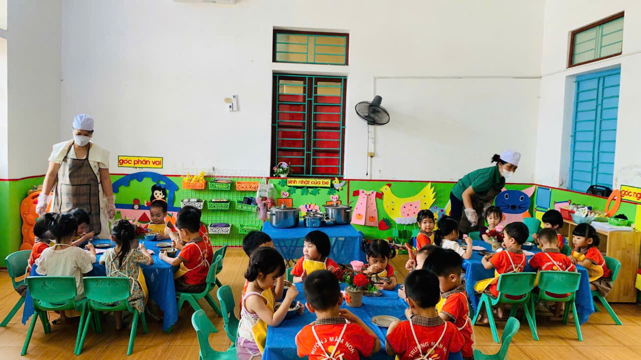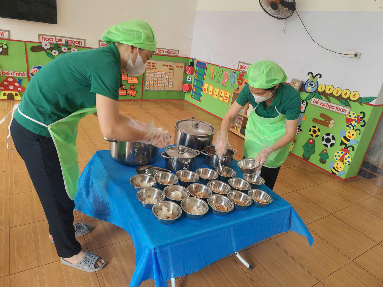Nhờ sự quan tâm, chăm sóc chu đáo của cô giáo, các con đều ăn hết suất, đảm bảo đủ chất dinh dưỡng để phát triển khỏe mạnh. Bên cạnh đó, các con còn được rèn luyện kỹ năng tự phục vụ, biết giữ gìn vệ sinh và hình thành nề nếp trong giờ ăn.
