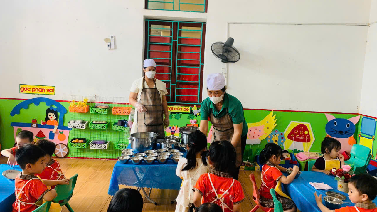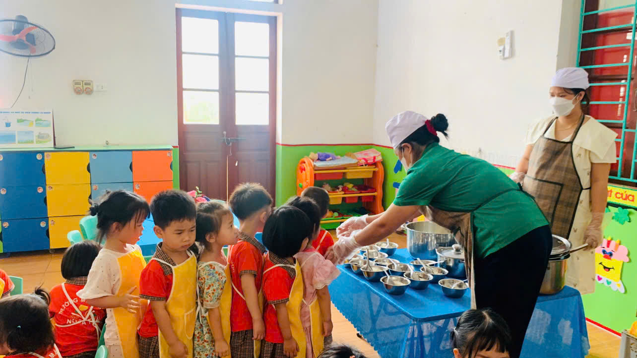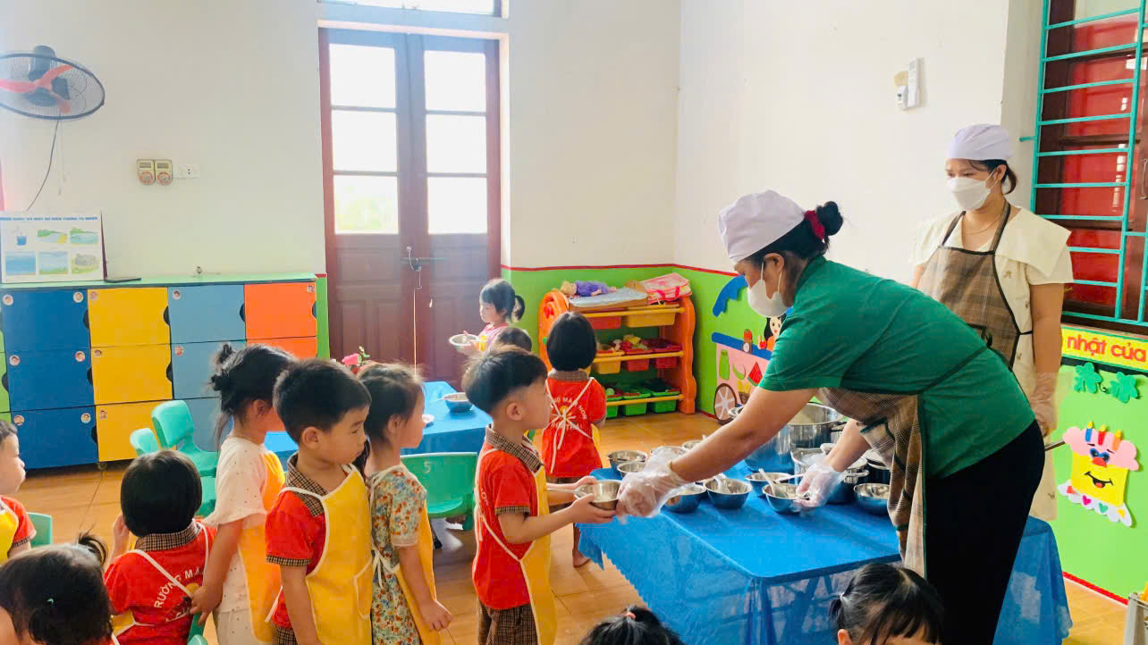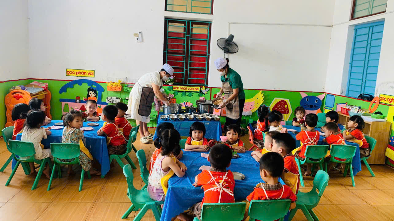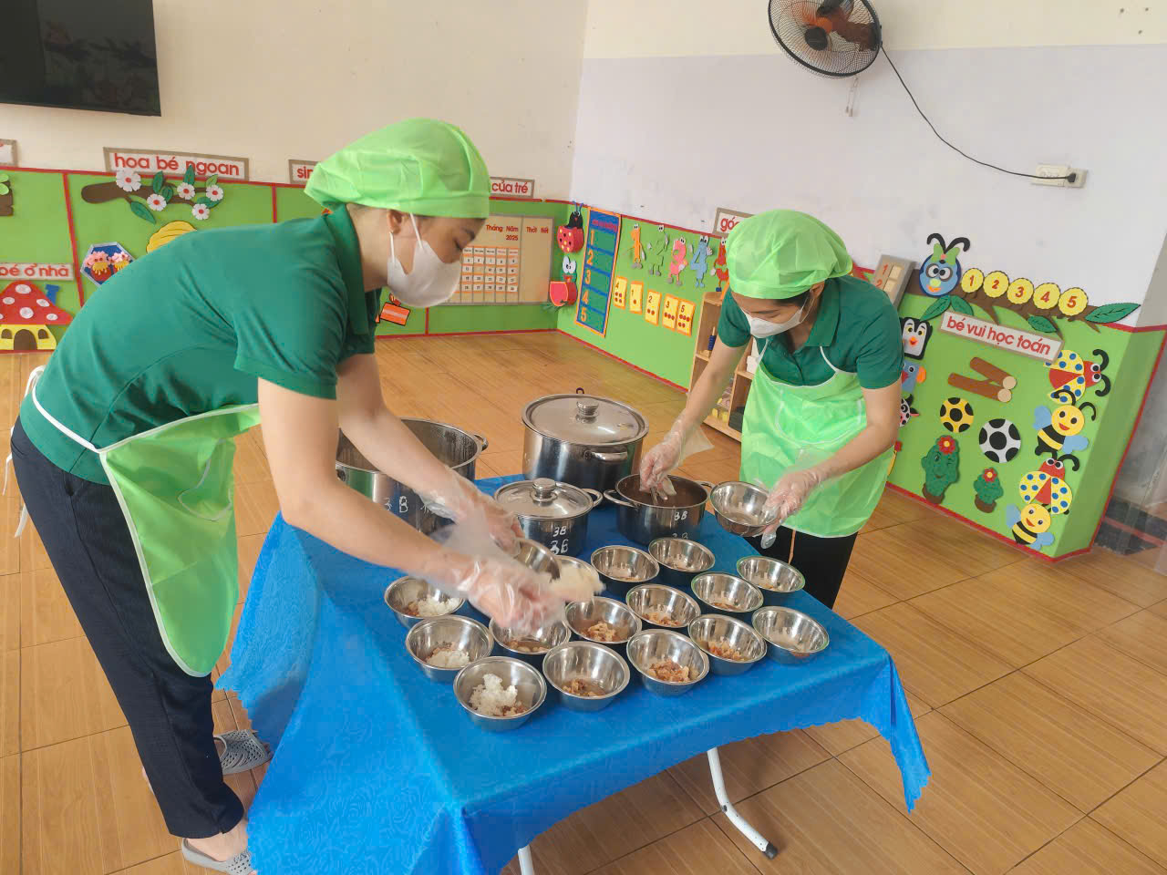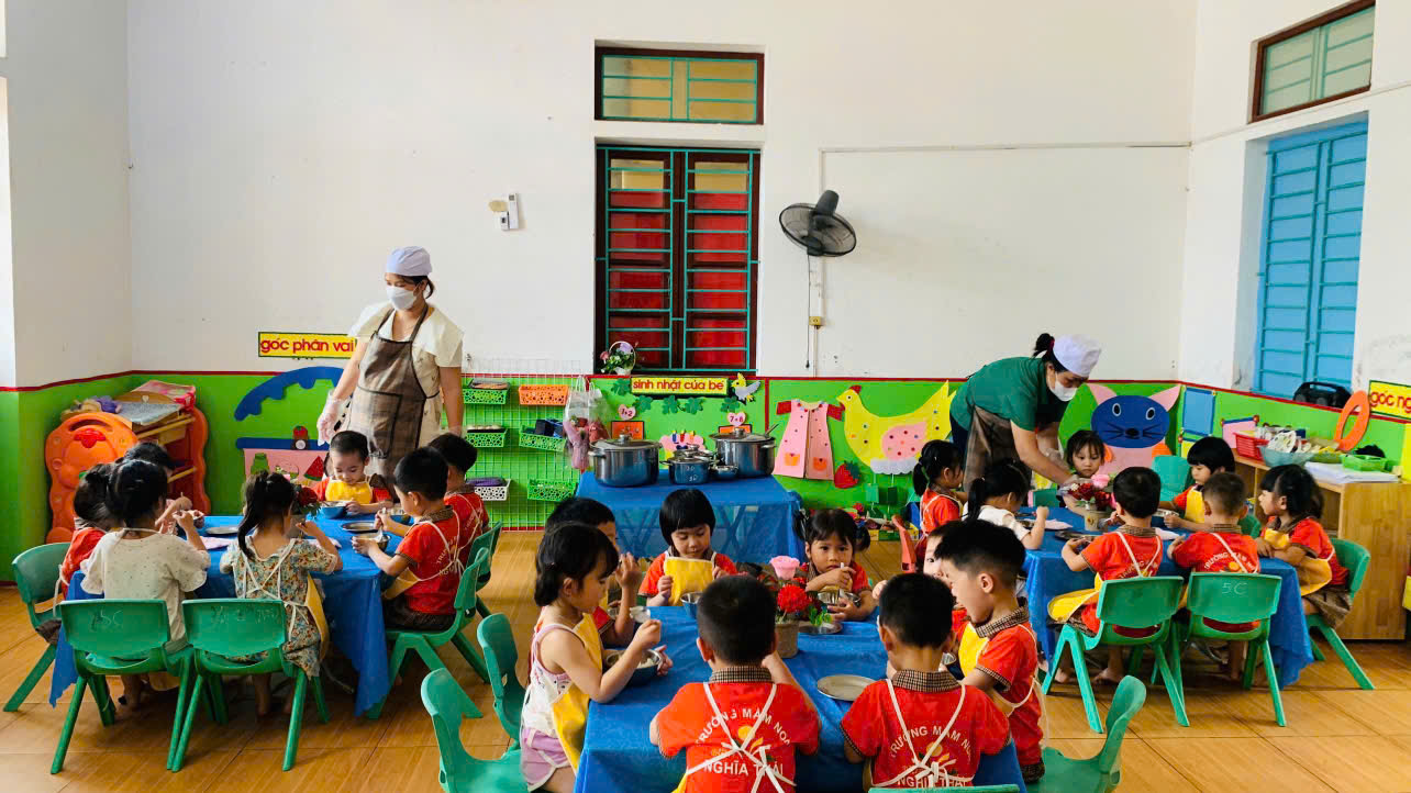 Nhờ sự quan tâm, chăm sóc chu đáo của cô giáo, các con đều ăn hết suất, đảm bảo đủ chất dinh dưỡng để phát triển khỏe mạnh. Bên cạnh đó, các con còn được rèn luyện kỹ năng tự phục vụ, biết giữ gìn vệ sinh và hình thành nề nếp trong giờ ăn.