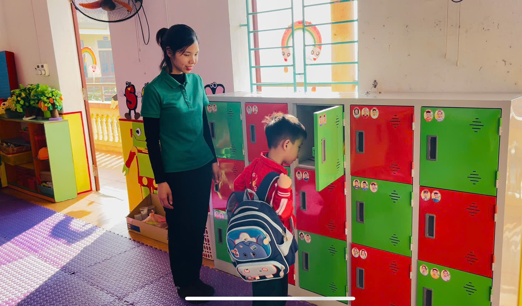 Sau khi trẻ ổn định, cô tiến hành điểm danh bằng hình thức nhẹ nhàng, gần gũi thông qua trò chuyện, nhận biết ký hiệu, giúp trẻ hình thành thói quen nề nếp, ý thức tập thể và sự tự tin khi tham gia các hoạt động chung.