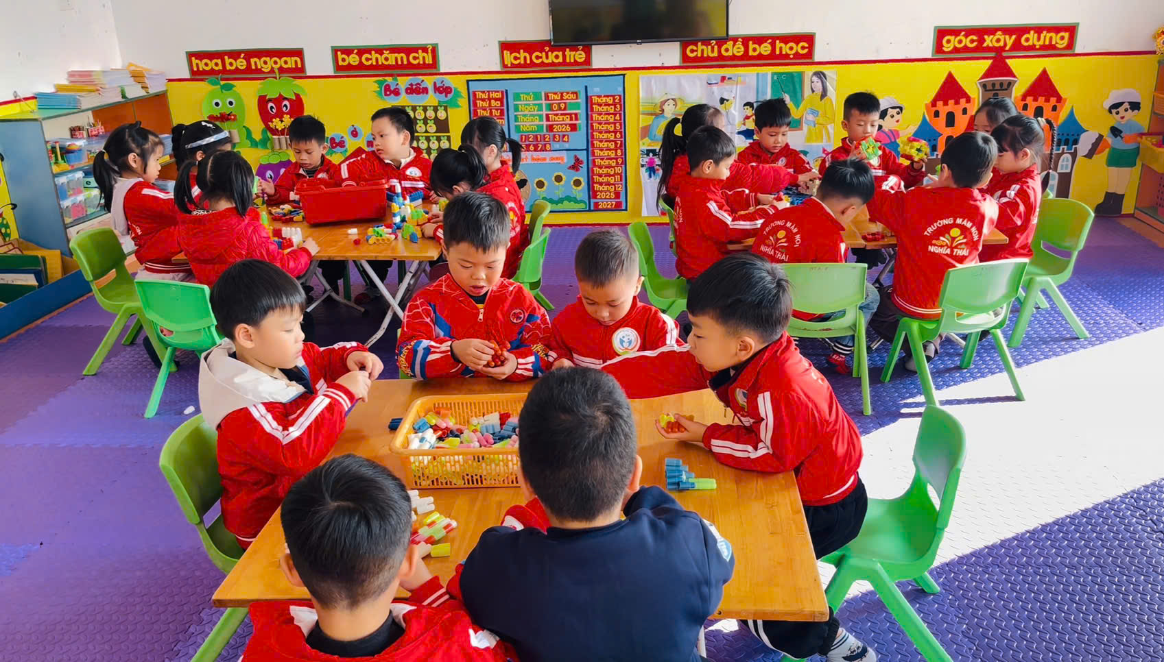 Trong giờ đón trẻ, các bé được tham gia chơi theo ý thích với những đồ chơi, góc chơi quen thuộc như xếp hình, chơi lắp ghép… Hoạt động này giúp trẻ thoải mái tinh thần, phát huy tính tích cực, chủ động, rèn kỹ năng giao tiếp và tạo mối quan hệ thân thiện giữa các bạn trong lớp.