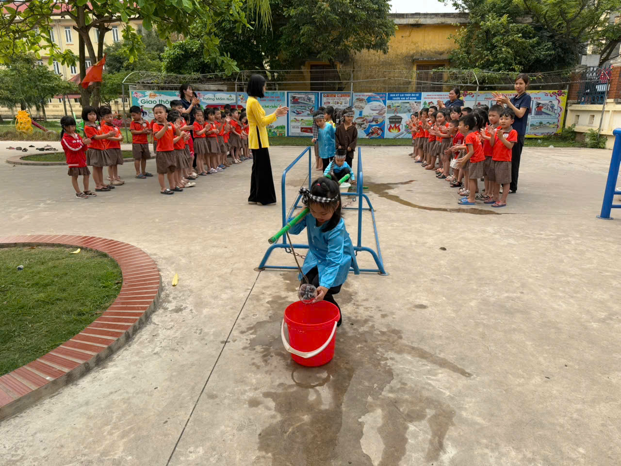 Trải nghiệm các trò chơi với nước như: chuyền nước, gánh nước qua cầu…. – qua đó giúp trẻ hiểu rằng nước rất quý giá và cần được sử dụng tiết kiệm.