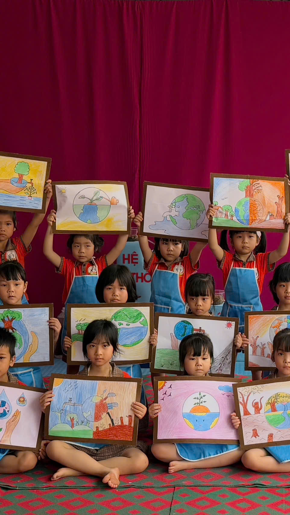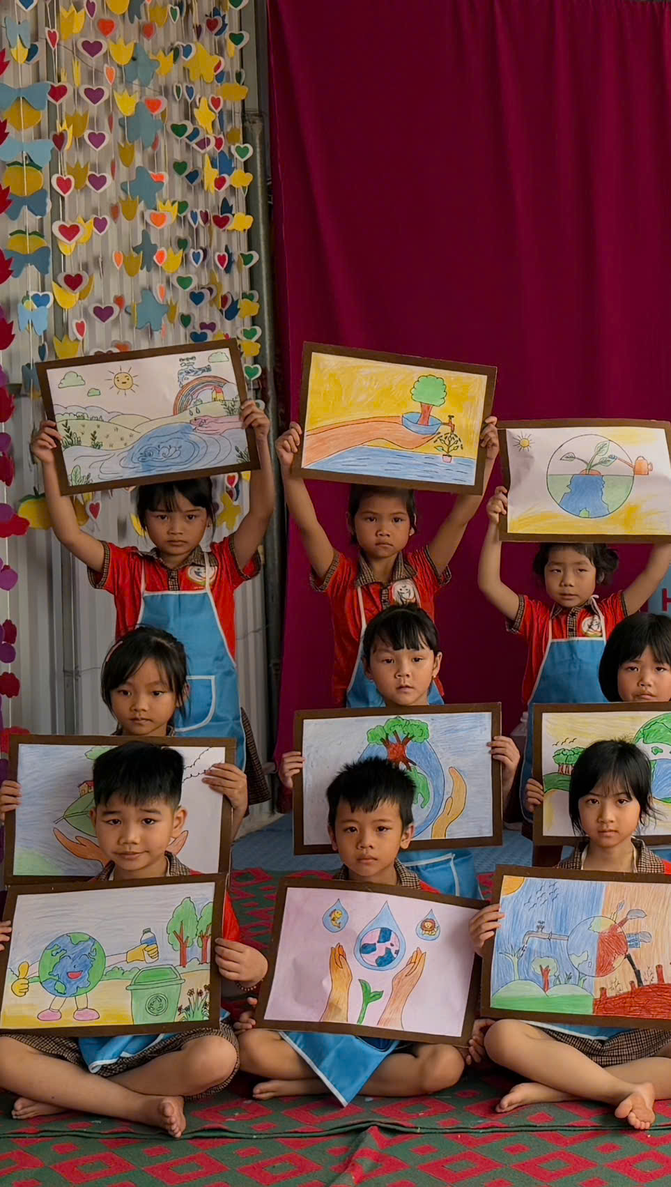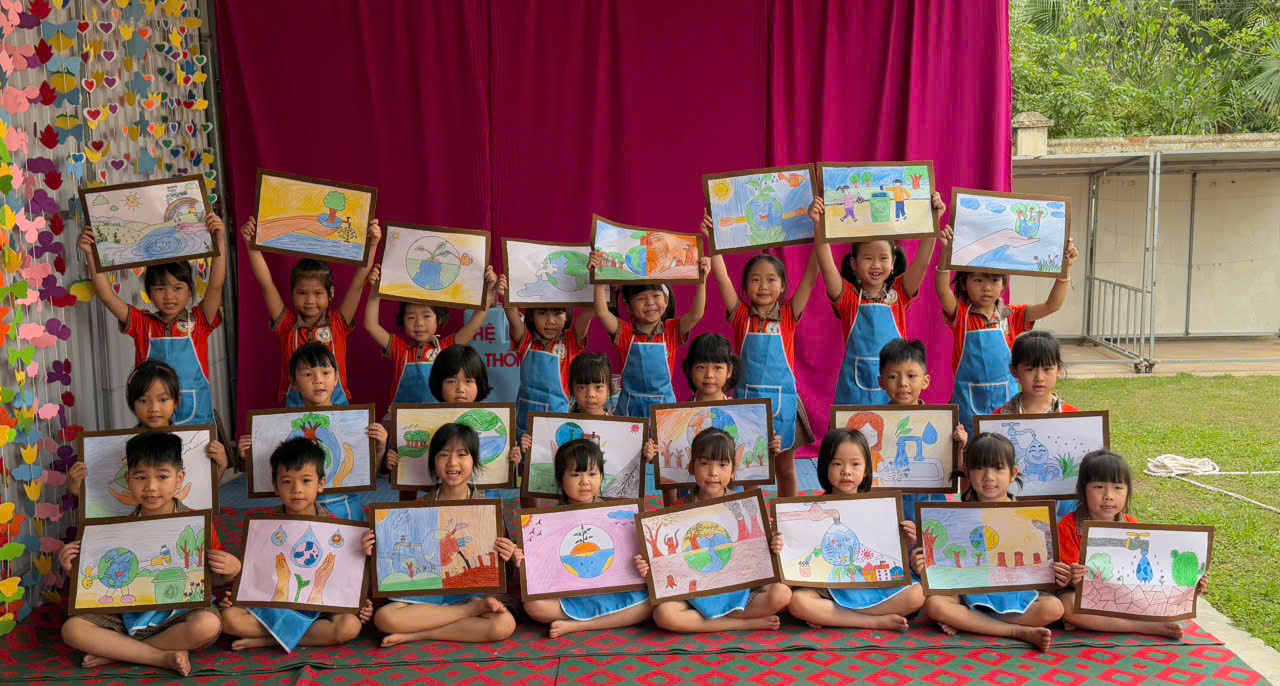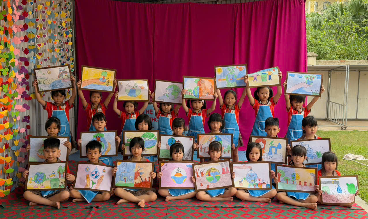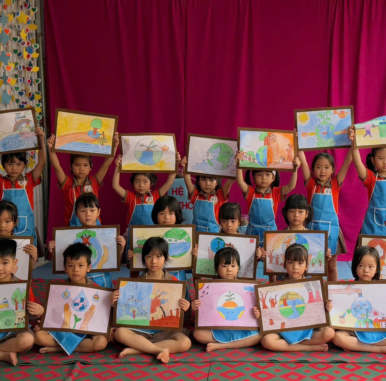 Thỏa sức sáng tạo với các bức tranh về “Giọt nước”, “Trái đất xanh”, góp phần lan tỏa thông điệp bảo vệ môi trường.