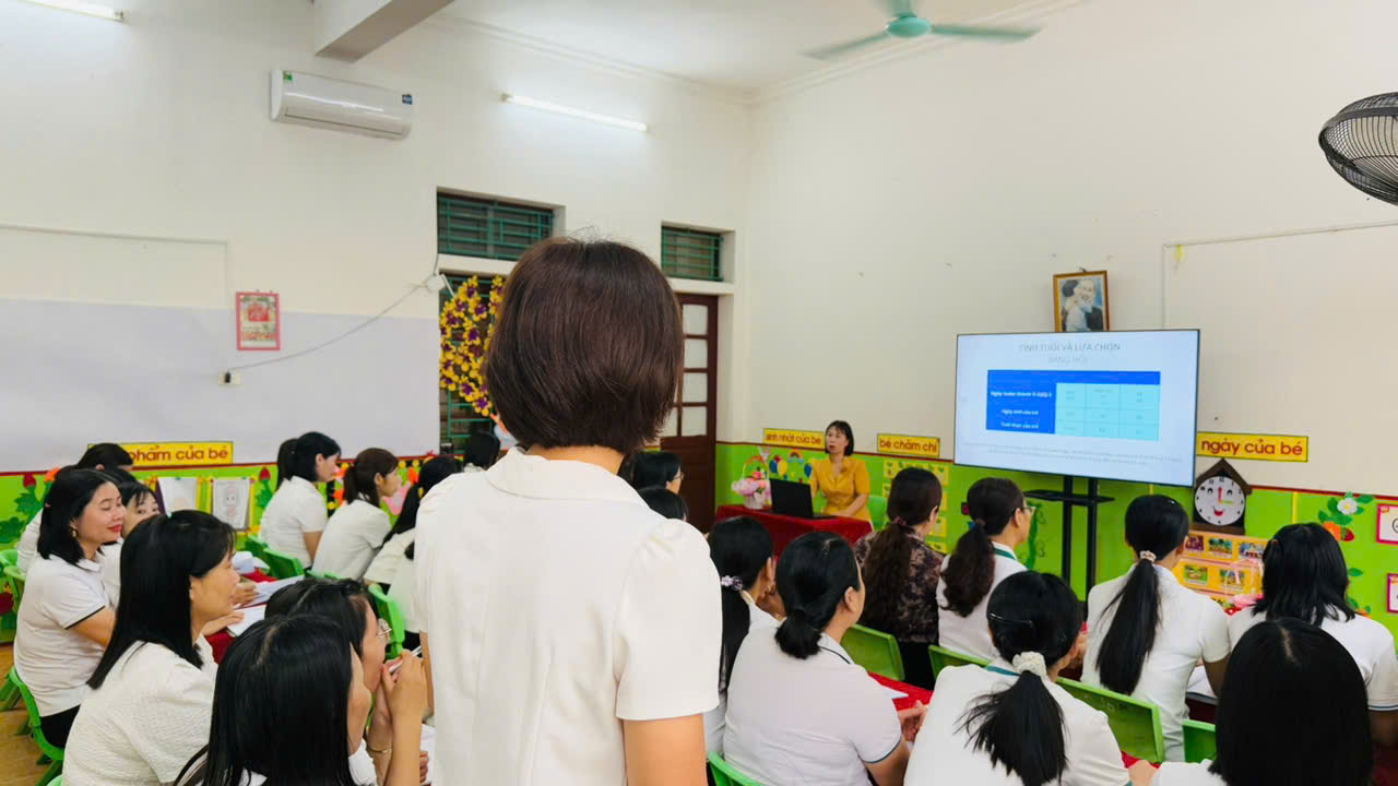 Nổi bật trong chuỗi hoạt động hưởng ứng là hình ảnh các cô giáo trong tà áo dài đỏ thắm và áo cờ đỏ sao vàng rạng rỡ, thể hiện niềm tự hào dân tộc, tinh thần đoàn kết và niềm tin vào ngày hội lớn của non sông. Bên cạnh đó, các cô giáo trong màu áo Đoàn Thanh niên xanh truyền thống đã tham gia biểu diễn các tiết mục văn nghệ sôi nổi, tươi vui nhằm cổ vũ tinh thần, tạo nên bầu không khí rộn ràng, phấn khởi trước thềm ngày bầu cử.
